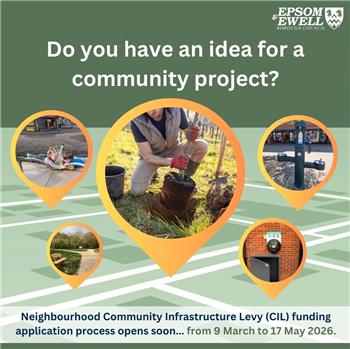 Applications can be submitted from 9 March 2026, but you can start preparing now by reviewing the CIL Spending Protocol (Section 5, pages 13-18); you will need to use this when completing the Neighbourhood CIL funding application form - if you have any questions, then please email CIL@epsom-ewell.gov.uk.