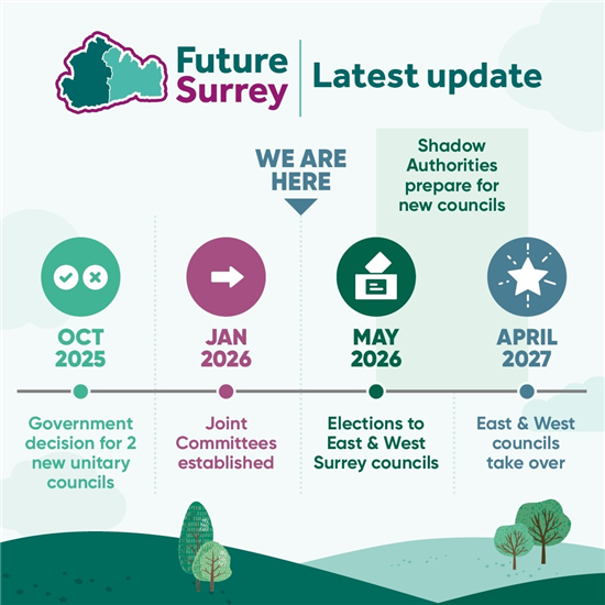 Progress continues with Surrey's transition to East Surrey Council and West Surrey Council